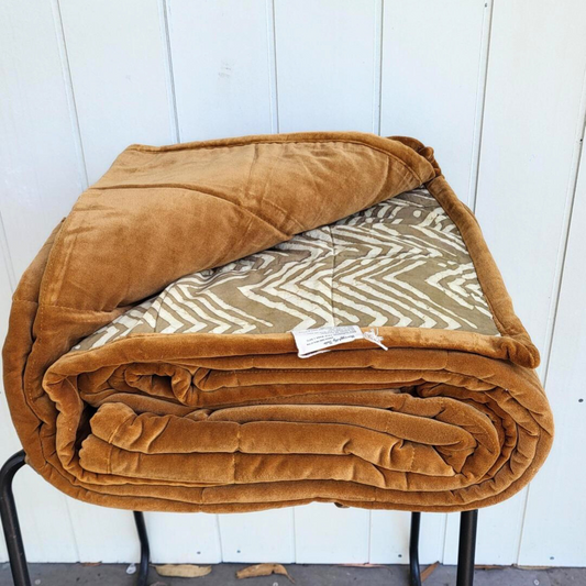 Ochre Creek Cotton Velvet Throw & Quilt Reverse Dabu Print