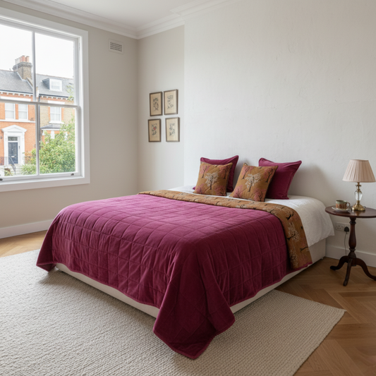 Berry Ode Cotton Velvet Quilt with Reverse Dabu Print