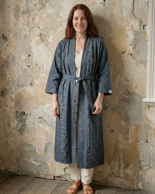 Only 3 LeftCotton Velvet Dabu Kimono - Eucalypt Mallee