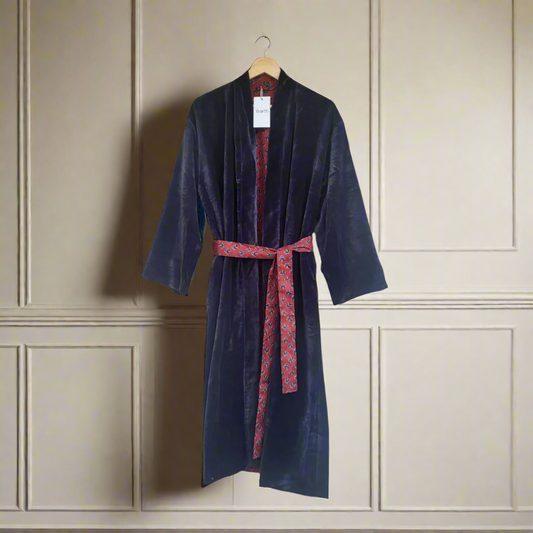 Cotton Velvet Dabu Kimono - Charcoal Plum