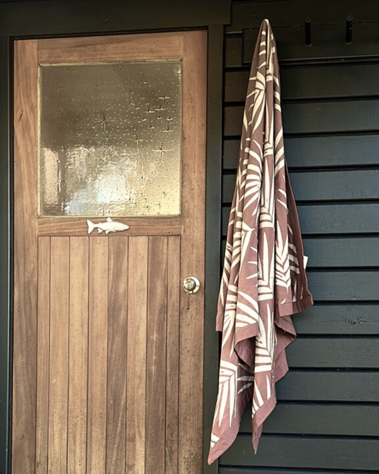 Bangalow Throw in Burnt SiennaSalt in the air, sun on the skin, and a soft organic cotton throw waiting by the door. This is the kind of effortless coastal living that feels like summer all year round. As seen on a weathered beach house door in Palm Beach - ready for sandy feet and ocean breezes.