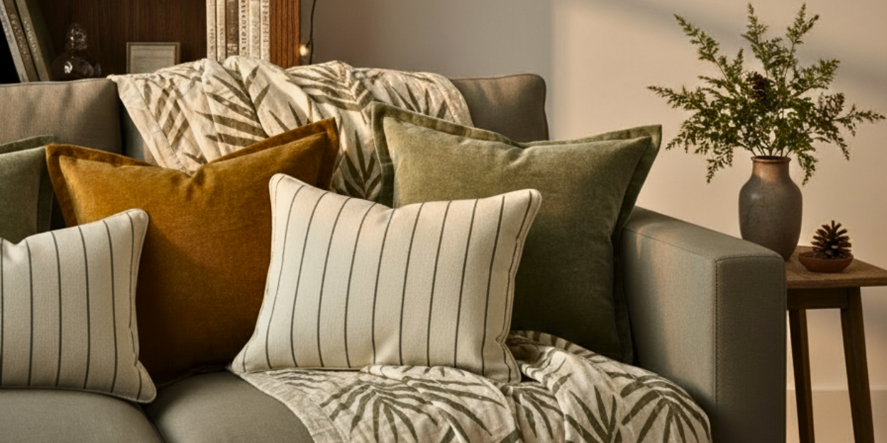 Organic Cotton Cushion Covers - Eucalyptus Stripes