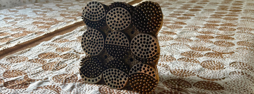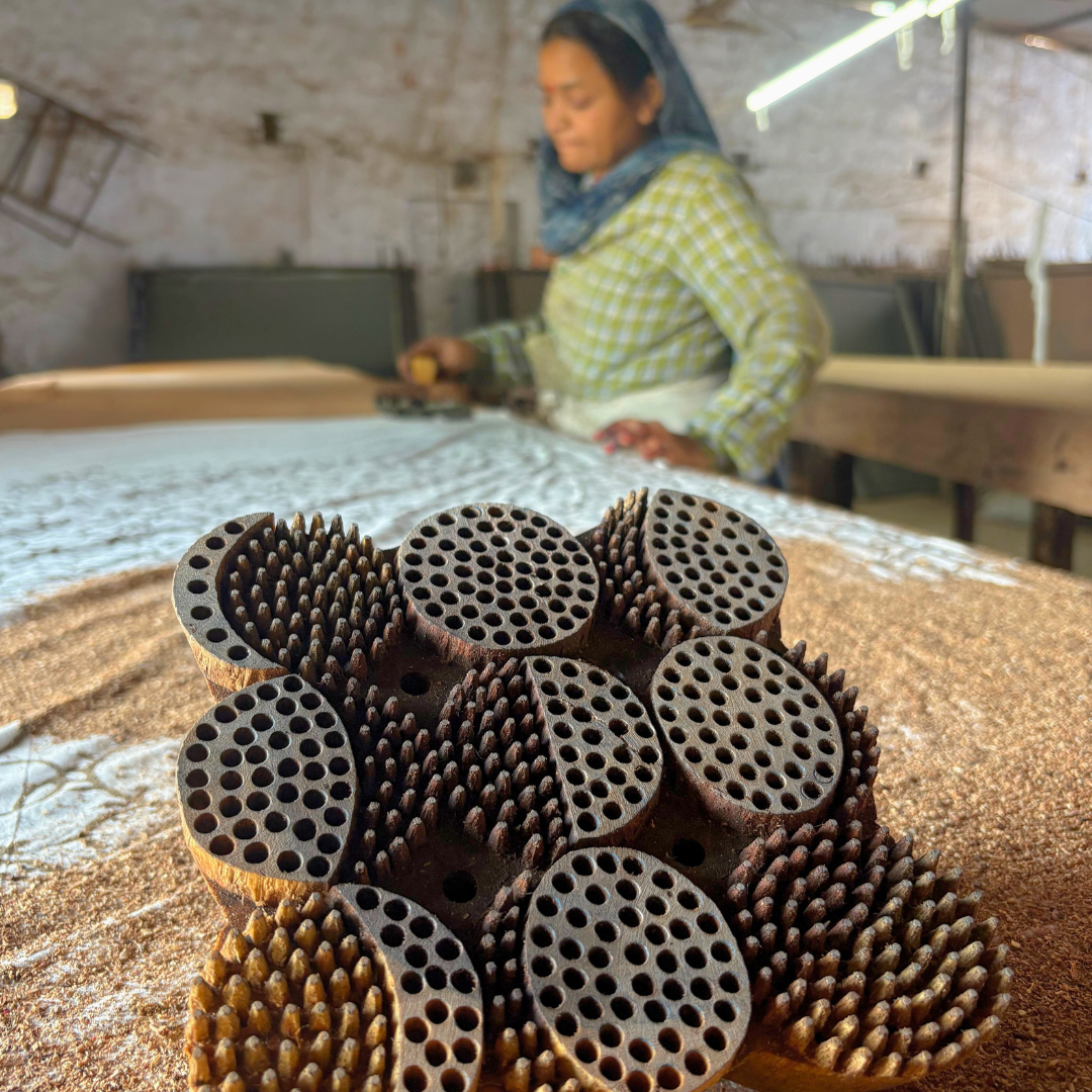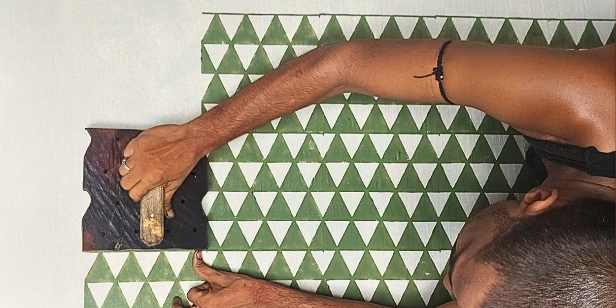 Cotton Velvet Reverse Dabu Print - Eucalypt Earth