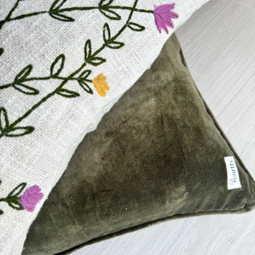 Wildflower Meadow - Embroidered Cushion Cover on Textured Cotton