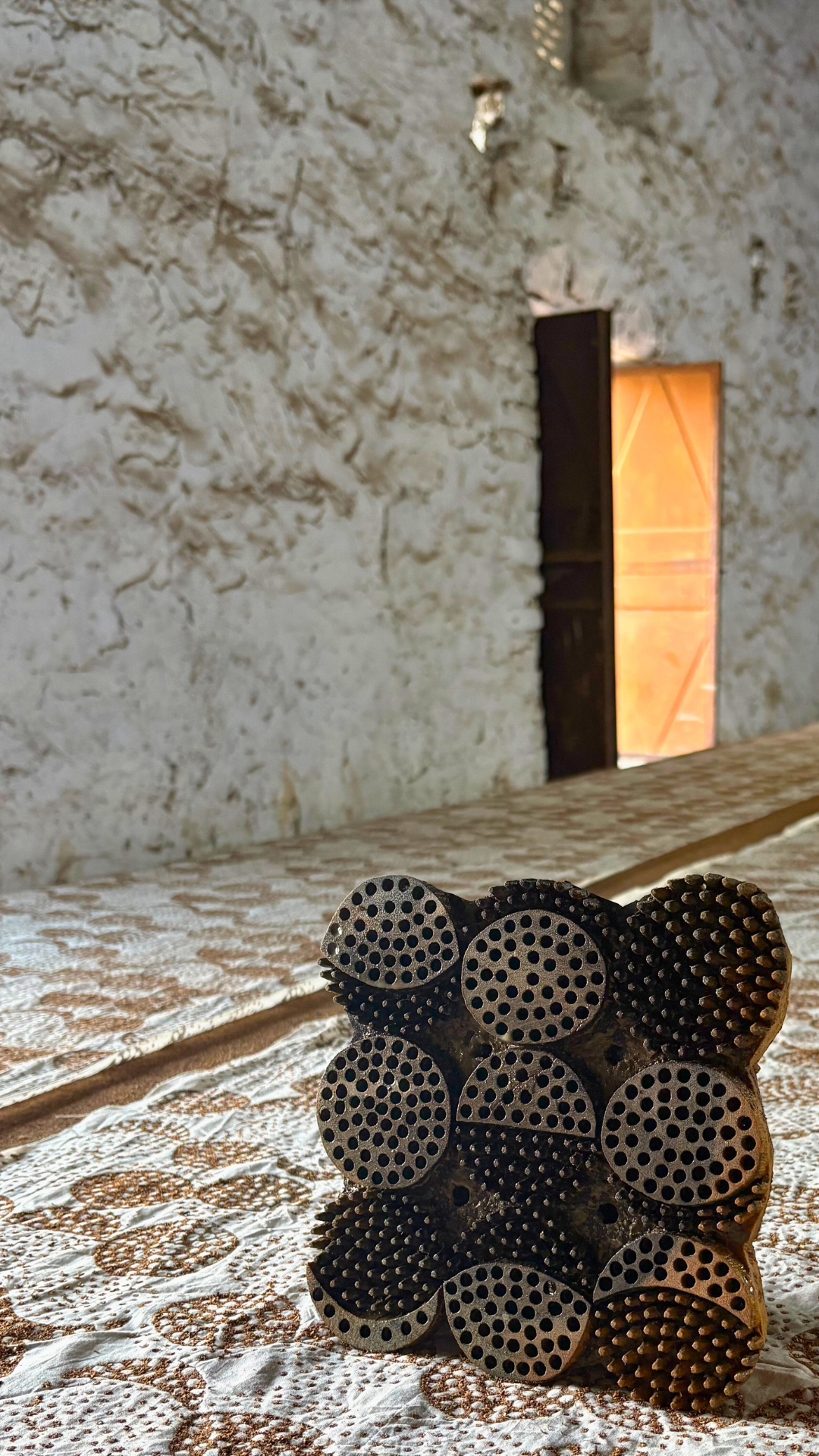 Cotton Velvet Reverse Dabu Print - Sand Drift