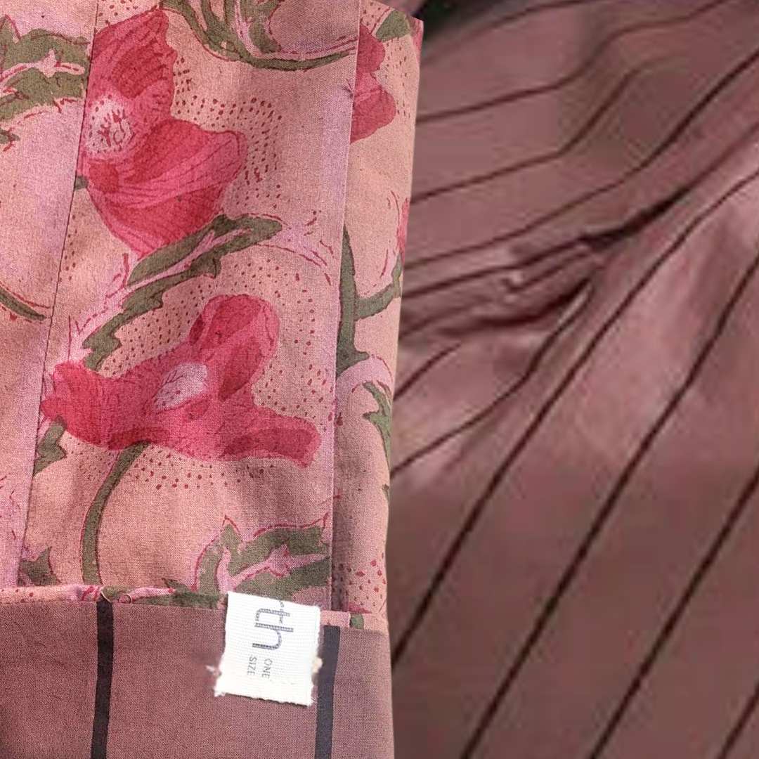 Each Sāmsarā Kimono is slow-made by skilled artisans who carefully repurpose discarded fabric remnants. Thoughtful craftsmanship ensures that every piece carries its own unique character while embracing sustainability at every step. Naturally overdyed in earthy tones, the kimono embodies the beauty of renewal and mindful creation.