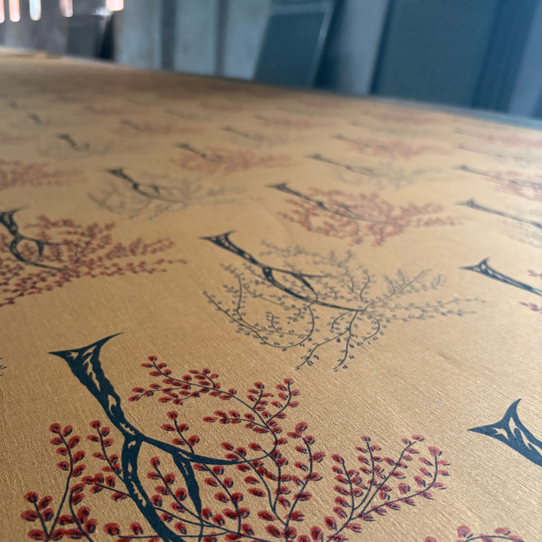 Cotton Velvet Reverse Dabu Print - Berry Ode