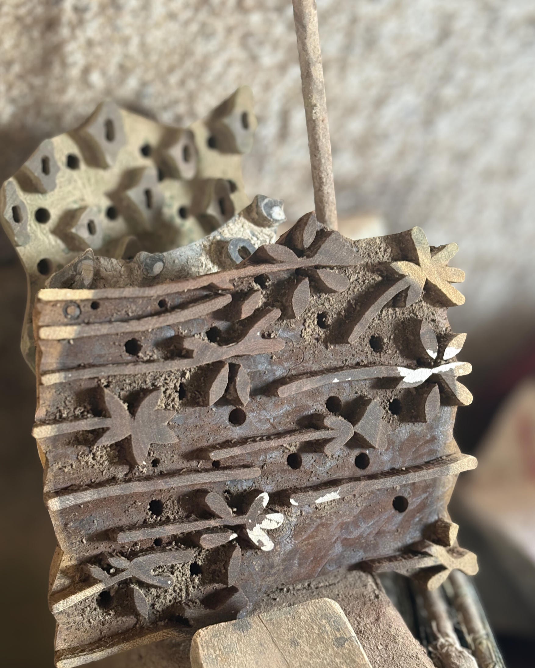 Cotton Velvet Reverse Dabu Print - Eucalypt Earth