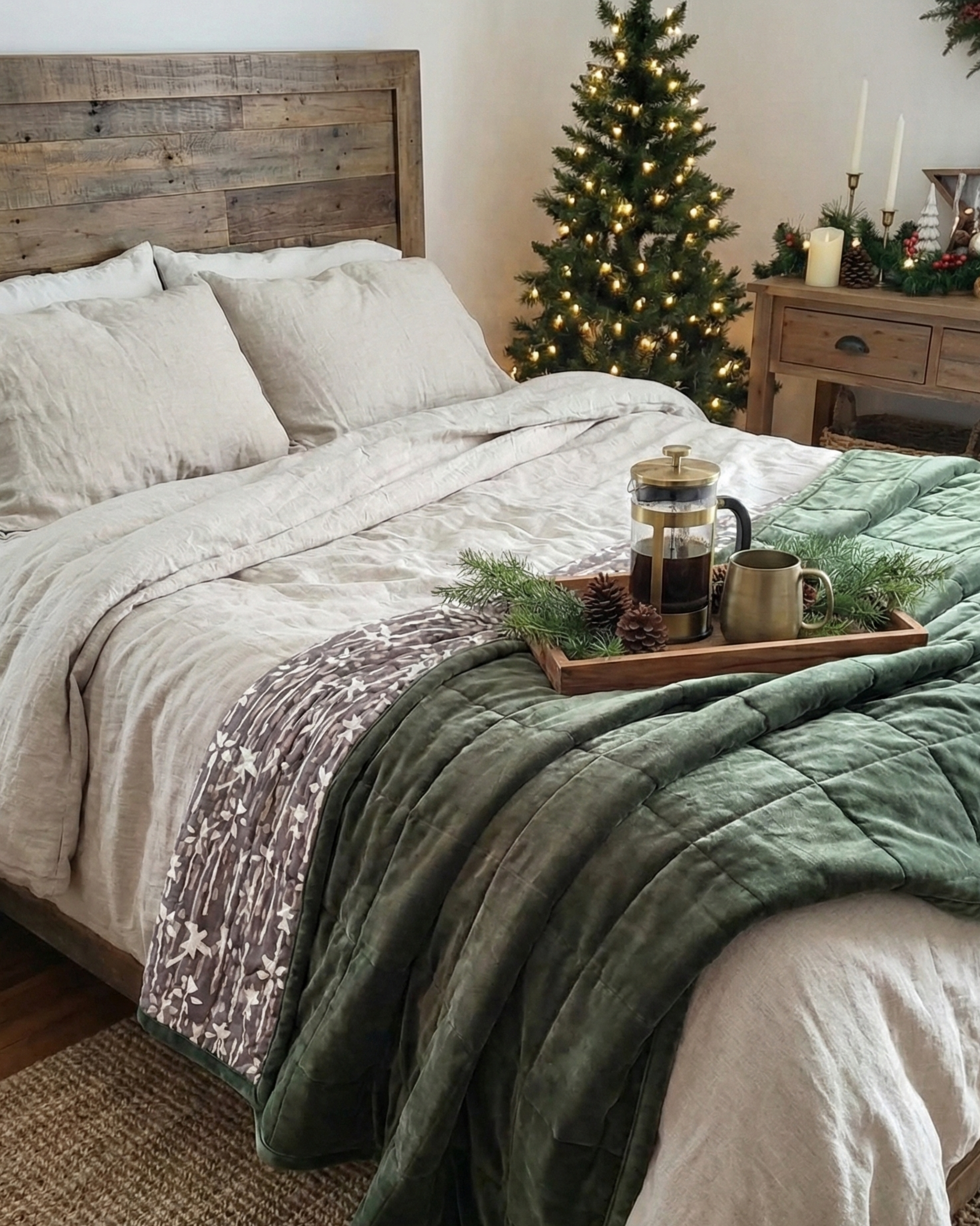 The Eucalypt Earth colour is the perfect complement to natural materials. We have it on our oak bed frame with linen sheets and the combination of textures and earthy tones is just beautiful. It feels very high-end and has tied the whole room together.