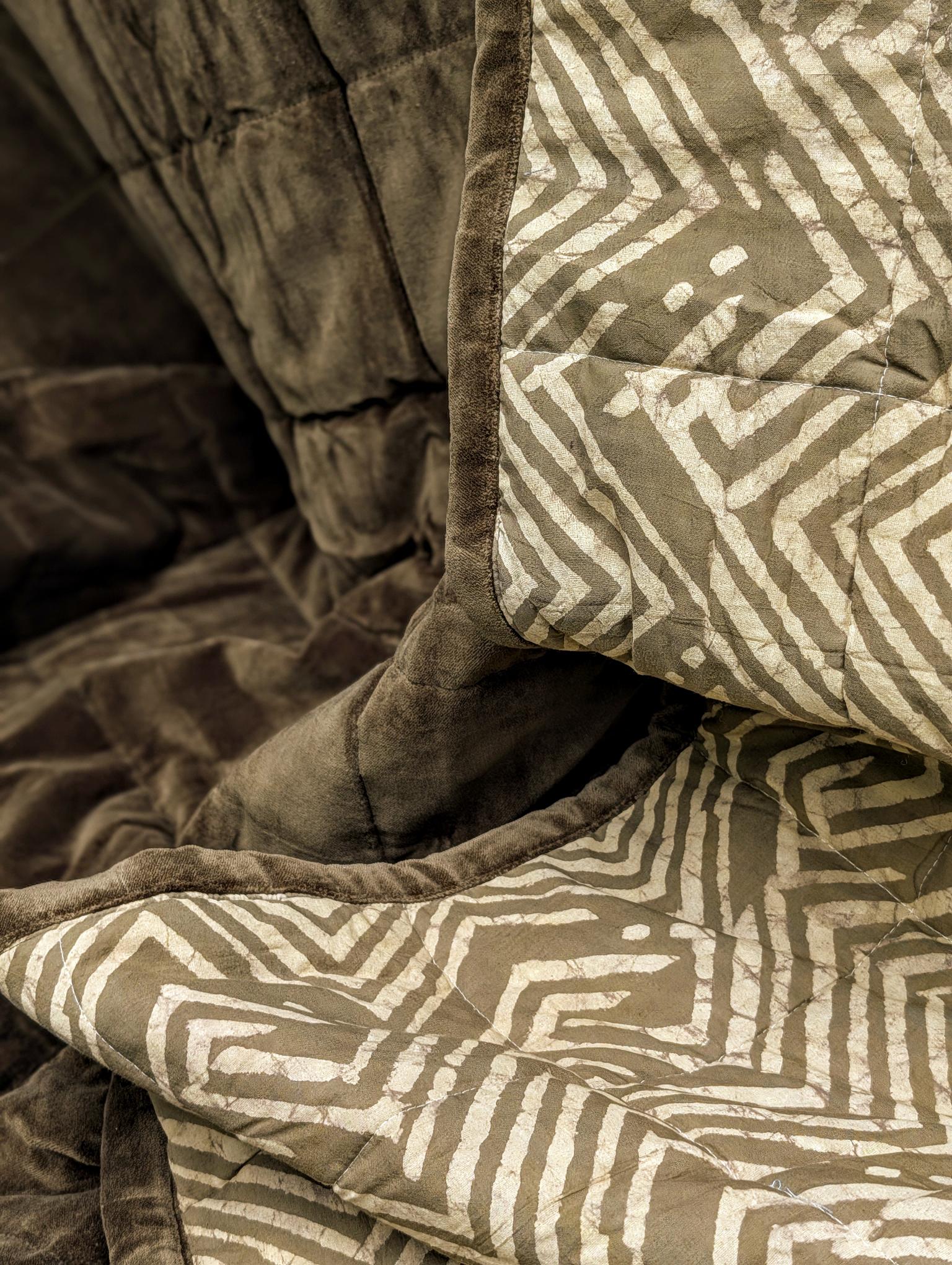 Crafted from premium heavy-weight cotton velvet for a "weighted-blanket" feel and perfect drape. Hand-block printed in Jaipur using traditional Dabu techniques. Each piece is a unique work of art.
