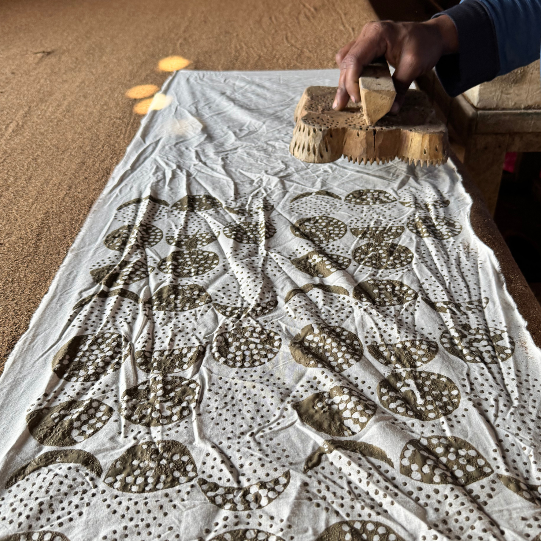 Crafted from premium heavy-weight cotton velvet for a "weighted-blanket" feel and perfect drape. Hand-block printed in Jaipur using traditional Dabu techniques. Each piece is a unique work of art.